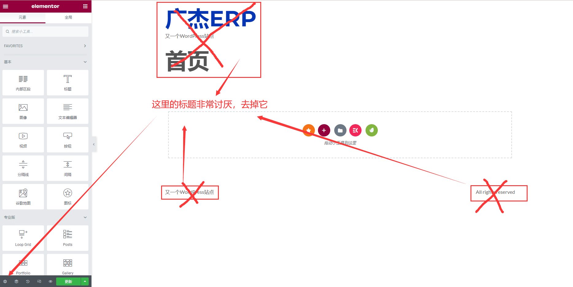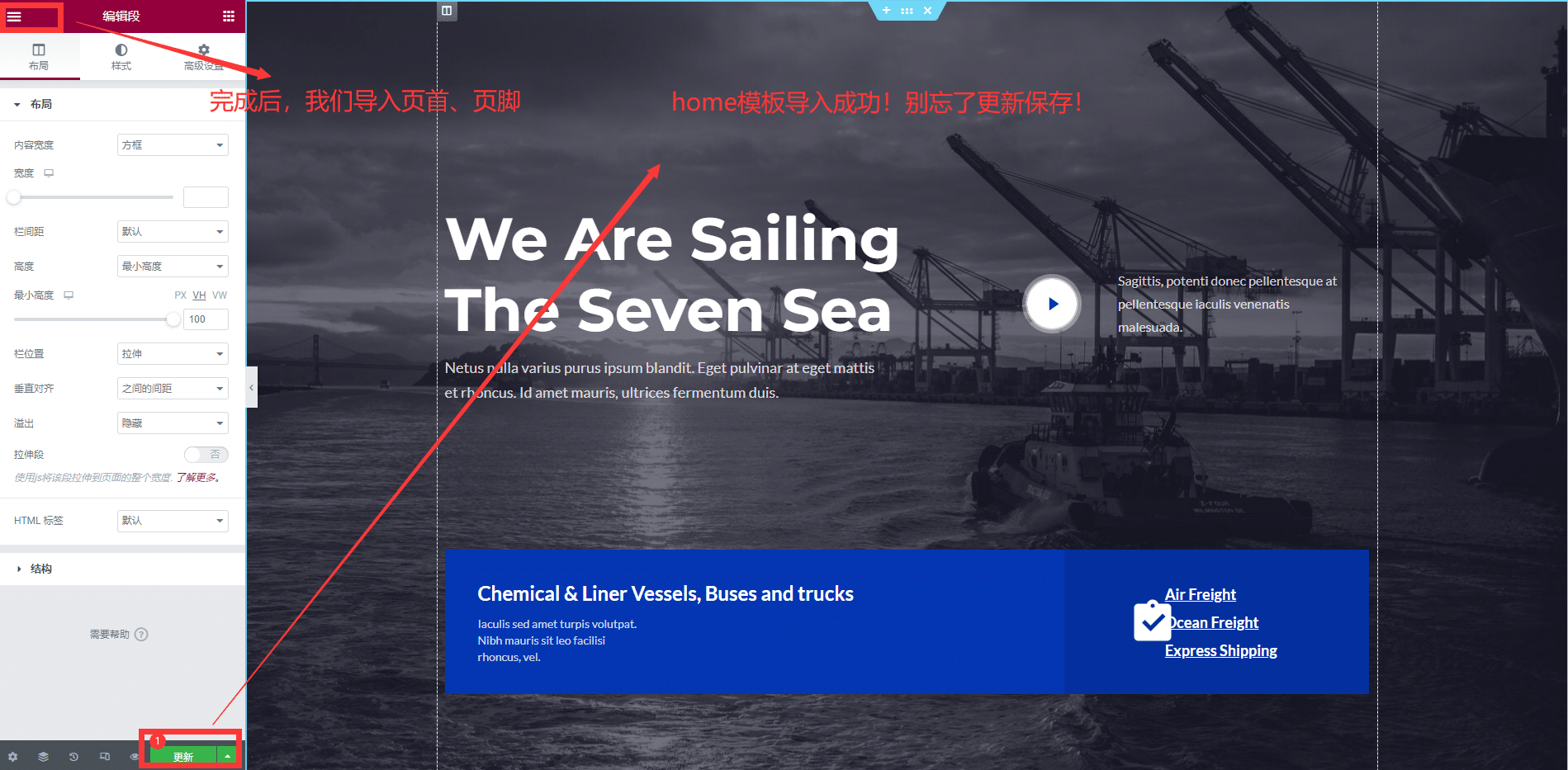 - 重复新建页面和导入模板操作,剩下的就的改成你喜欢的样子。你似乎感觉elementor不会用,elementor是可视化拖拽的编辑器,自行点击试一下,就能知道每个选项有什么功能,最好一点css知识,其实有问题找找资料就很容易解决