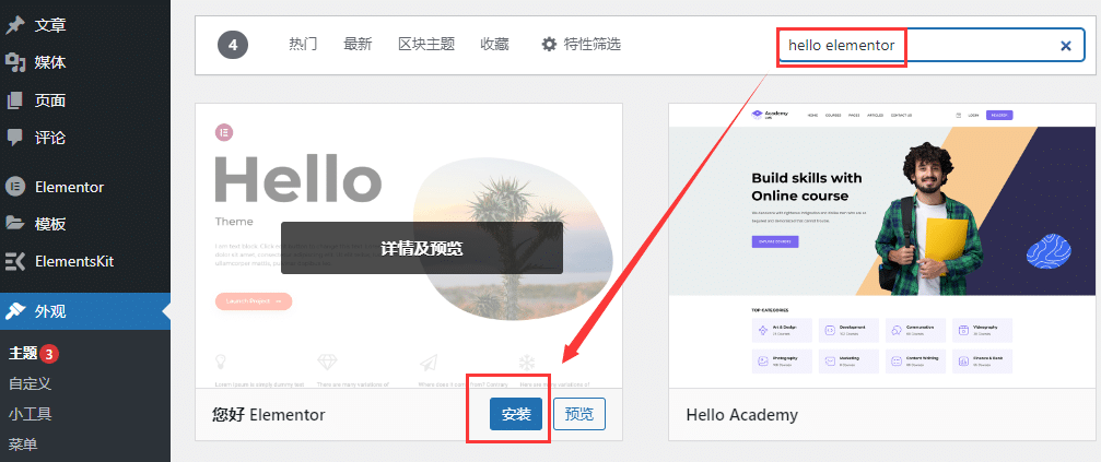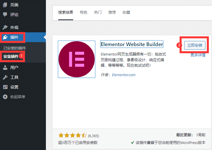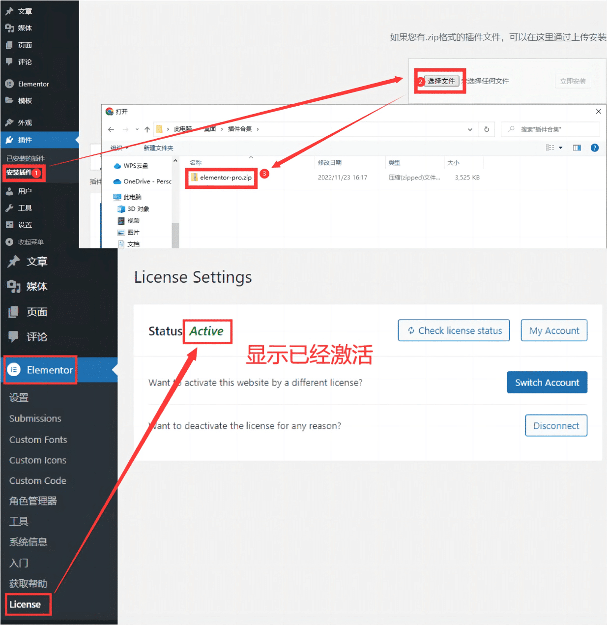 - 先安装elementor免费版,并启用,之后再由本站提供的elementor pro,上传安装、启用