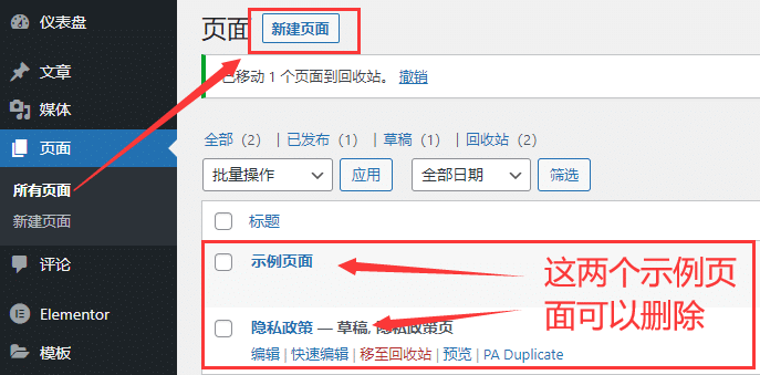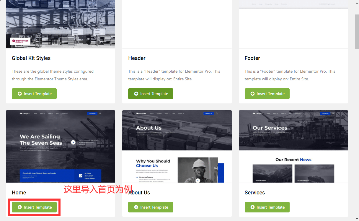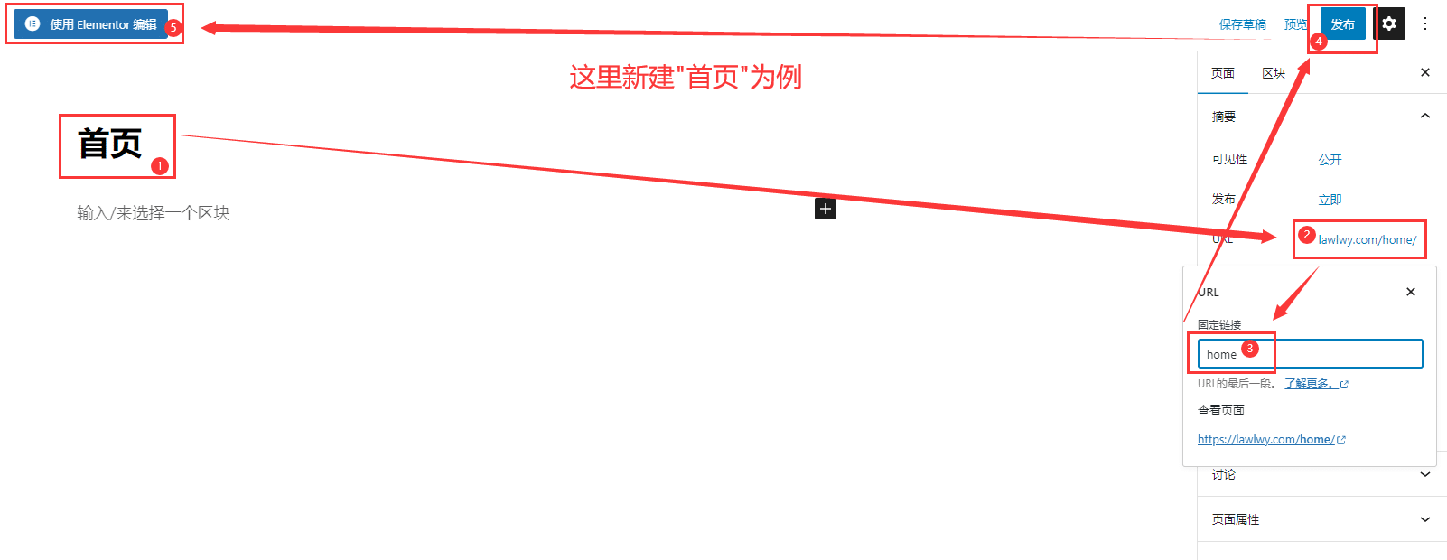 404:用于链接有误或者找不到网站内容时,显示的内容 - 安装“hello elementor”主题(减少未知错误),新建页面(以首页为例),并将elementor模板导入页面