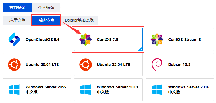 - 购买云服务器,选择系统镜像CentOS 7.6