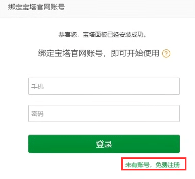 - 登录宝塔面板后,注册一个宝塔账号